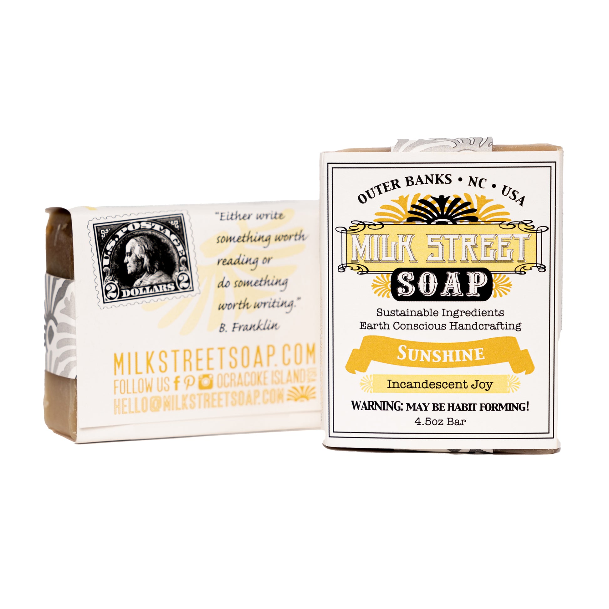 Creamy Goat Milk. Turmeric, Lemongrass, Sweet Orange, Rosemary Essential Oils Blend. Exuberant, Sunny, Incandescent Joy!